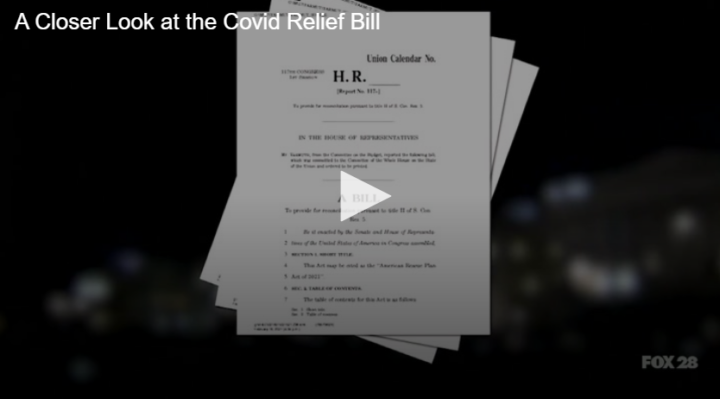A Closer Look at the Covid Relief Bill by Fox 28 Spokane | @ | February 23, 2021 12:02 pm TwitterFacebookGoogle+LinkedInPinterest 0 The massive Covid relief bill is quickly making its way through the House, but the large price tag could mean trouble ahead. Related Posts Bloomsday is Back! No Whining About Wine Headlines for June 2 2021