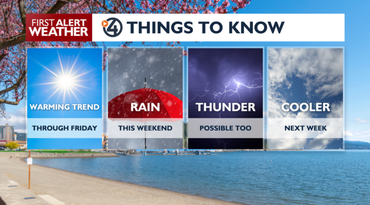 Today will have beautiful clear skies with dry conditions across the Inland Northwest. Temperatures will climb into the 60s with a few communities as warm as the mid-70s in the afternoon. Thursday Night remains quiet with lows dropping into the 30s and 40s.