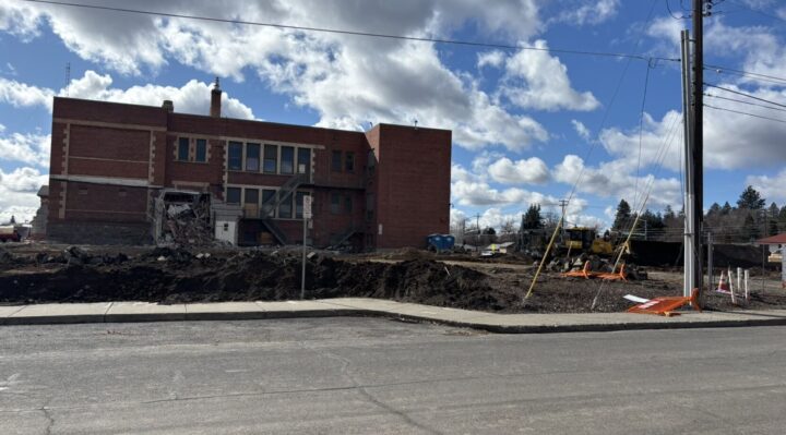 Spokane’s oldest school, built 116 years ago, will be replaced with a new building. The elementary school’s frontside is the last portion standing.