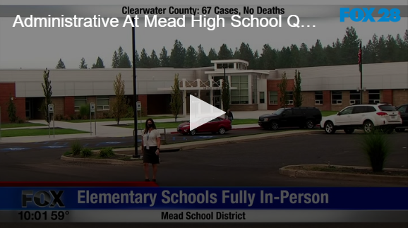 Administrative At Mead High School Quarantined by Fox 28 Spokane | @ | October 6, 2020 12:51 am TwitterFacebookGoogle+LinkedInPinterest 0 Related Posts Bloomsday is Back! No Whining About Wine Headlines for June 2 2021