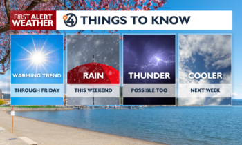 Wind Advisories are in effect around the region from 8 a.m. to 5 p.m. Tuesday. Winds will gust up to 45 mph in the Blue Mountains, Upper Columbia Basin, Okanogan Valley, and Northwest Montana. Gusts up to 35 mph will occur around Spokane and Coeur d’Alene. High temperatures will stay in the mid-50s to mid-60s with very dry air, increasing the risk for grass fires. Some blowing dust is also a possibility in Central Washington.