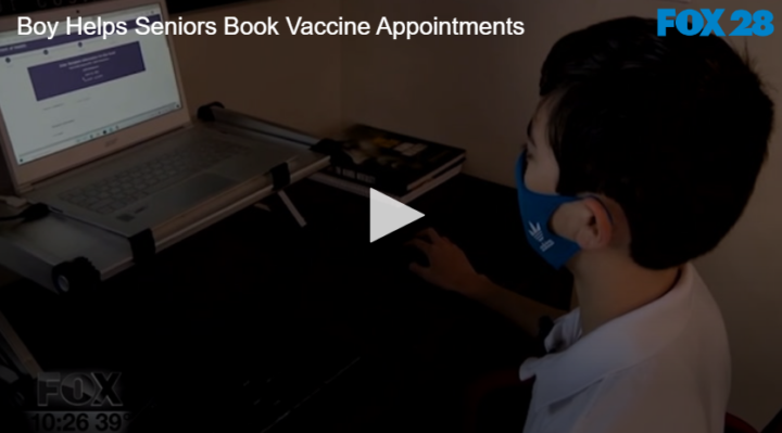 Boy Helps Seniors Book Vaccine Appointments by Fox 28 Spokane | @ | March 5, 2021 2:16 pm TwitterFacebookGoogle+LinkedInPinterest 0 A young boy in New York is making a huge difference in his community by helping to schedule vaccine appointments for seniors. Related Posts Bloomsday is Back! No Whining About Wine Headlines for June 2 2021