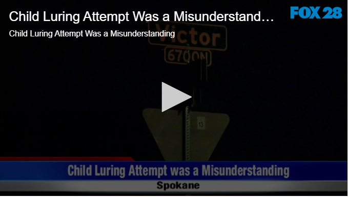 Child Luring Attempt Was a Misunderstanding by Fox 28 Spokane | @ | February 3, 2020 11:41 am TwitterFacebookGoogle+LinkedInPinterest 0 Related Posts Bloomsday is Back! No Whining About Wine Headlines for June 2 2021