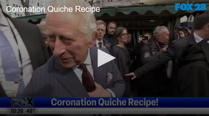 Coronation Quiche Recipe by Fox 28 Spokane | @ | April 26, 2023 12:11 pm TwitterFacebookGoogle+LinkedInPinterest The newest British monarch has chosen the simple egg and cheese dish to be featured on his coronation day. Related PostsBaby Seal Wanders Into Bar Teddy Bear Missing After Reaching Stratosphere Radio Show Connects Woman With Cat