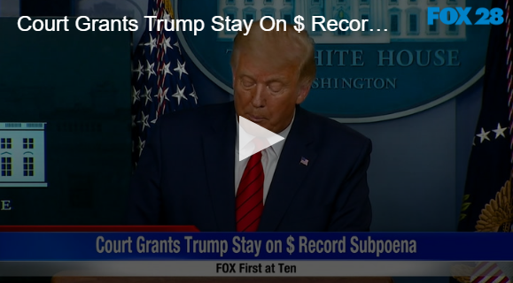 Court Grants Trump Stay On $ Record Subpoena by Fox 28 Spokane | @ | September 2, 2020 12:29 am TwitterFacebookGoogle+LinkedInPinterest 0 Related Posts Bloomsday is Back! No Whining About Wine Headlines for June 2 2021