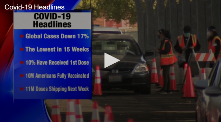 Covid-19 Headlines by Fox 28 Spokane | @ | February 10, 2021 12:40 pm TwitterFacebookGoogle+LinkedInPinterest 0 New case numbers are coming in for Covid-19. Global cases are down by 17% and over 10% of Americans have received their first vaccine dose. Related Posts Bloomsday is Back! No Whining About Wine Headlines for June 2 2021