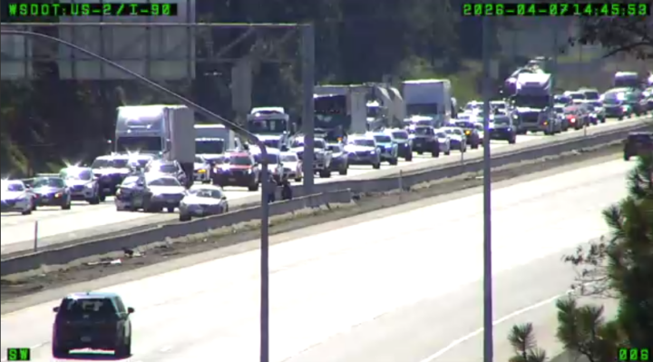 A crash is blocking the left lane on I-90 eastbound near Garden Springs Road exit, according to Spokane Regional Transportation Management Center.