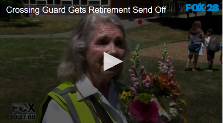 Crossing Guard Gets Retirement Send Off by Fox 28 Spokane | @ | June 23, 2022 12:08 pm TwitterFacebookGoogle+LinkedInPinterest As school is finishing for kids all over, one school in Massachusetts gave their favorite crossing guard a very lovely retirement send-off. Watch it here. Related Posts Art Program Helps Disabled People Weekend Digest Jan 10-11 Animal Antics With Monkeys And Donkeys