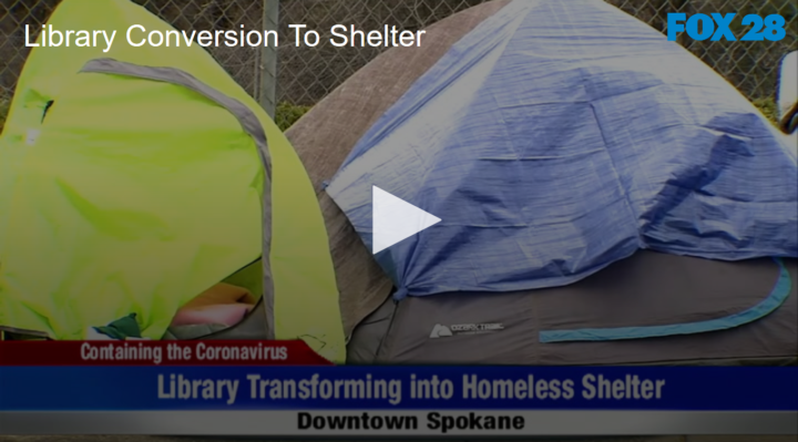 Downtown Library Converting Into Homeless Shelter by Fox 28 Spokane | @ | March 30, 2020 10:06 am TwitterFacebookGoogle+LinkedInPinterest 0 The downtown library is beginning converted into a homeless shelter. Related Posts Bloomsday is Back! No Whining About Wine Headlines for June 2 2021