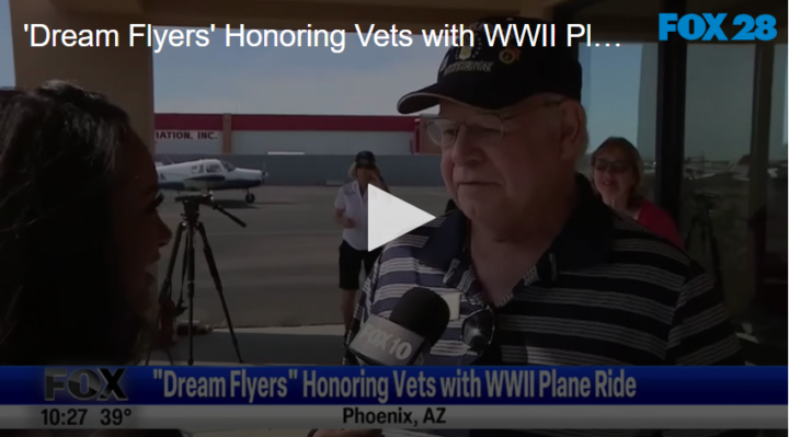 ‘Dream Flyers’ Honoring Vets with WWII Plane Ride by Fox 28 Spokane | @ | April 14, 2023 12:19 pm TwitterFacebookGoogle+LinkedInPinterest WWII veterans in Phoenix are getting the flight of a lifetime thanks to a local organization that wanted to say “thank you for your service” in a special way. Check out the full story here. Related Posts Art Program Helps Disabled People Weekend Digest Jan 10-11 Animal Antics With Monkeys And Donkeys