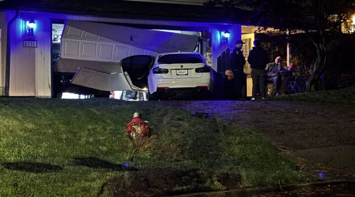 SPOKANE, Wash. – Spokane Fire Department Station 18 responded to the Shiloh Hills neighborhood on Wednesday night after a car crashed into the garage of a home on North Colton Place and North Colton Street.