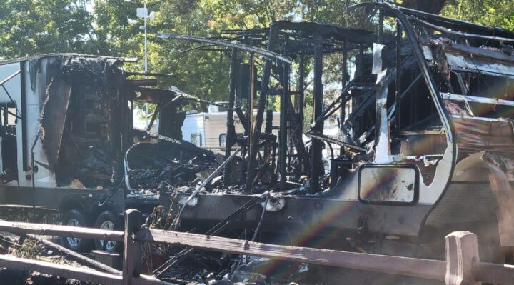 CLARKSTON, Wash. – Two motor homes were destroyed in a fire Monday afternoon amid a in the region, Asotin County Fire District 1 shared in a social media post.
