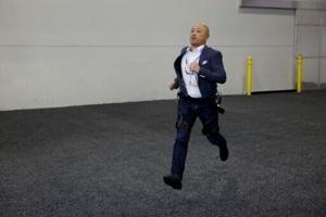 After trying out an Ascentiz exoskeleton, Trevor Bills, a Canadian entrepreneur visiting CES, was quite impressed.