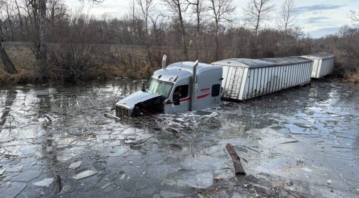 The condition of the driver is unknown, and it is unclear when the truck will be removed.