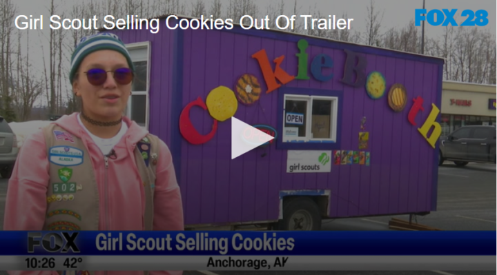 Girl Scout Selling Cookies Out Of Trailer by Fox 28 Spokane | @ | March 24, 2023 12:51 pm TwitterFacebookGoogle+LinkedInPinterest One Girl Scout in Alaska is doing something creative to sell cookies this year. Related PostsBaby Seal Wanders Into Bar Teddy Bear Missing After Reaching Stratosphere Radio Show Connects Woman With Cat