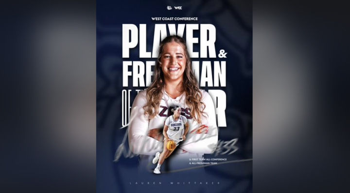 She also becomes the first player in Gonzaga program history to sweep the two awards in the same season. Whittaker earned a conference-record 13 freshman of the week honors during the regular season. She was also recognized as the player of the week once.