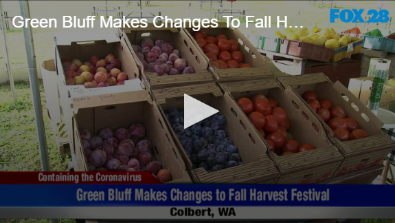 Green Bluff Makes Changes To Fall Harvest Festival by Fox 28 Spokane | @ | September 22, 2020 11:55 am TwitterFacebookGoogle+LinkedInPinterest 0 Related Posts Bloomsday is Back! No Whining About Wine Headlines for June 2 2021