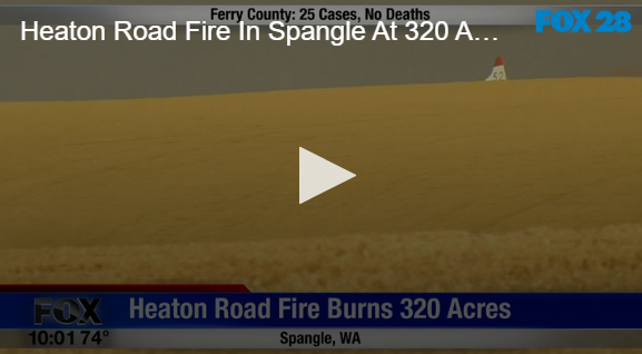 Heaton Road Fire In Spangle At 320 Acres by Fox 28 Spokane | @ | September 3, 2020 1:15 pm TwitterFacebookGoogle+LinkedInPinterest 0 Related Posts Bloomsday is Back! No Whining About Wine Headlines for June 2 2021