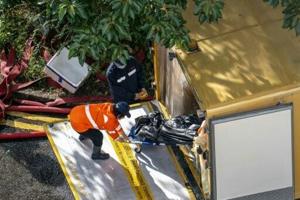 Legions of police officers from the Disaster Victim Identification Unit, dressed in white full-body protective gear, entered the burnt buildings on Saturday morning, an AFP reporter saw.
