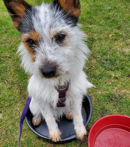I have a bit of a menagerie at my house. My cat Poe has been with me the longest and is now nine years old. My Green Cheek Conure, Willow, was the first pet I clicker-trained. He can spin in circles, jump onto my finger, and give kisses on cue. I also have two lizards, a snake, and eleven tarantulas. There are also my two dogs, Kai and Wasabi. Kai is a homebody and I wanted a dog that would enjoy group classes, dabble in sports, and maybe even be my demo dog. That’s why last year I got myself a puppy and named him Wasabi. He is a “sports mix” and the first dog I got from a breeder. Mini Australian Cattle Dog/Jack Russell Terrier mix (affectionately referred to as a Cattle Rustler). Right now, we do all the things to find out what we enjoy doing together. We take multiple classes a month, including Parkour and Nosework. One thing we are practicing is musical freestyle and we plan to join the Ruff Revue. My ultimate goal is that he can be my training buddy and demo dog.