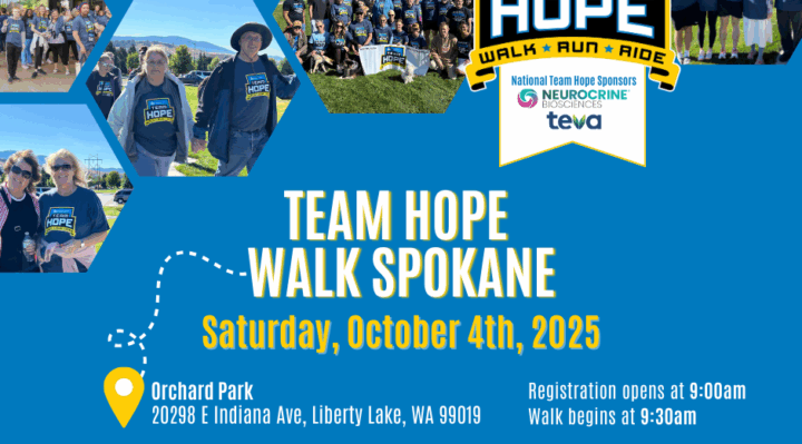 LIBERTY LAKE, Wash. – The Washington State Chapter of the Huntington’s Disease Society of America (HDSA) will host the Team Hope Walk in Liberty Lake on Saturday, October 4 at Orchard Park.