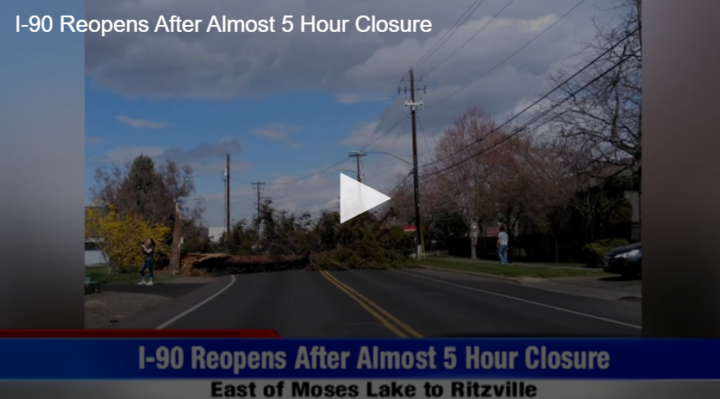 I-90 Reopens After Almost 5 Hour Closure by Fox 28 Spokane | @ | March 29, 2021 3:27 pm TwitterFacebookGoogle+LinkedInPinterest 0 I-90 from Moses Lake to Ritzville opens back up after shutting down for nearly 5 hours because of a dust storm. Related Posts Bloomsday is Back! No Whining About Wine Headlines for June 2 2021