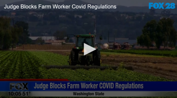 Judge Blocks Farm Worker Covid Regulations by Fox 28 Spokane | @ | April 28, 2021 10:51 am TwitterFacebookGoogle+LinkedInPinterest 0 A judge in central WA is throwing out a set of Covid restrictions put in place to protect farm workers.