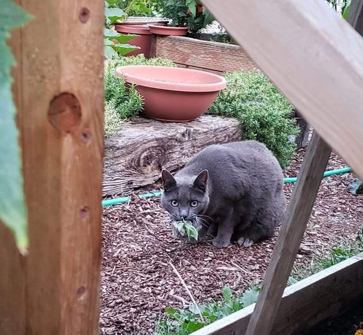 For my gardening friends who don’t want cats pooping in their gardening beds, I get it. That is a problem. I would do the motion sprinklers, I would “install” the product I posted, using with long spikes in gardening beds, and I might try motion lights (I use and swear by Mr. Beams). If all else fails, and you maybe want good rodent patrol, provide litter boxes for the cats (you can also add attractant). For comedy, you can do the plastic forks in the gardening beds—but the disarray left after other animals, probably not cats, that have cruised through looks like a mess to clean up.