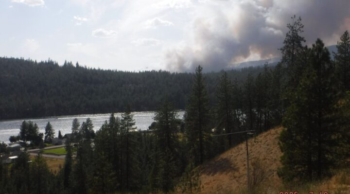 According to Stevens County Fire District One, the fire has been named the “Lake Spokane Fire,” and is currently burning 575 acres. One primary structure and one secondary structure have been destroyed in the blaze.