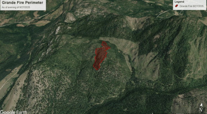 COLVILLE, Wash. – The lightning-caused Grande Fire is burning 22 acres large about twelve miles north of Colville.
