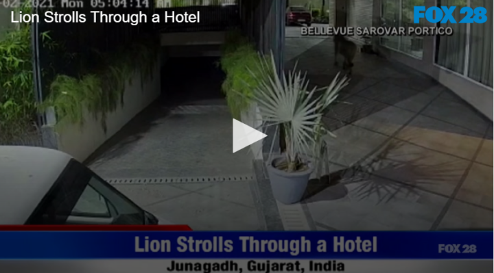 Lion Strolls Through a Hotel by Fox 28 Spokane | @ | February 11, 2021 2:39 pm TwitterFacebookGoogle+LinkedInPinterest 0 Caught on Camera, a lion decides to take a stroll through a hotel. Luckily the hotel was vacate at the time and now one got hurt. Related PostsBaby Seal Wanders Into Bar Teddy Bear Missing After Reaching Stratosphere Radio Show Connects Woman With Cat