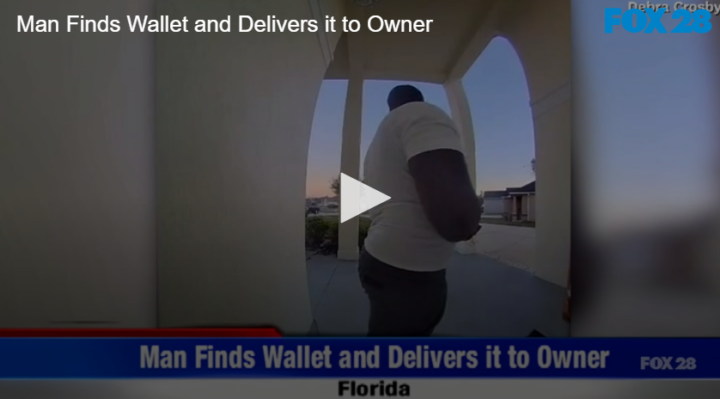 Man Finds Wallet and Delivers it to Owner by Fox 28 Spokane | @ | February 26, 2021 3:44 pm TwitterFacebookGoogle+LinkedInPinterest 0 A man drove twenty minutes out of his way to hand deliver a lost wallet to its owner after finding it in a parking lot. Related PostsBaby Seal Wanders Into Bar Teddy Bear Missing After Reaching Stratosphere Radio Show Connects Woman With Cat