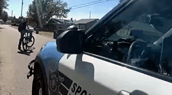 Investigators said in a release that officers located the suspect on July 28 riding a bicycle, which was reported stolen in June, and arrested him on charges of Felony Harassment-Threats to Kill related to a prior incident on July 24.