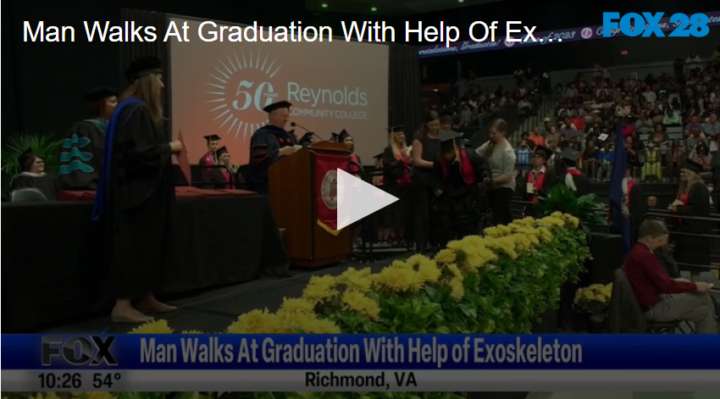 Man Walks at Graduation with Help of Exoskeleton by Fox 28 Spokane | @ | May 23, 2023 12:34 pm TwitterFacebookGoogle+LinkedInPinterest 7 years after being shot, a 25-year-old walked across the stage at his graduation. Watch his amazing story here. Related Posts Art Program Helps Disabled People Weekend Digest Jan 10-11 Animal Antics With Monkeys And Donkeys