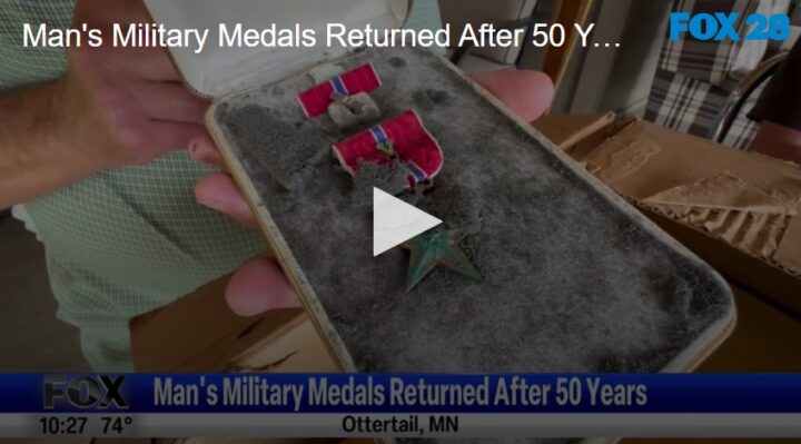 Man’s Military Medals Returned After 50 Years by Fox 28 Spokane | @ | August 3, 2023 12:20 pm TwitterFacebookGoogle+LinkedInPinterest A special reunion took place in Minnesota this week. A Vietnam veteran as reunited with his medals 50 years later. Watch the heartwarming story right here on last night’s FOX Find. Related PostsBaby Seal Wanders Into Bar Teddy Bear Missing After Reaching Stratosphere Radio Show Connects Woman With Cat
