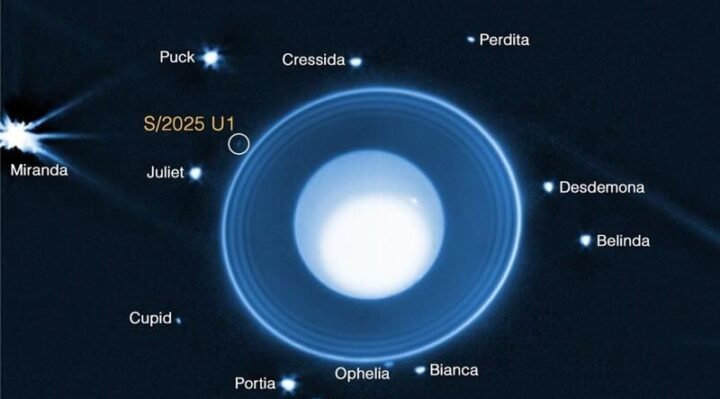 The moon, estimated to be only six miles in diameter, is currently named S/2025 U1 until an official name is given by the International Astronomical Union.