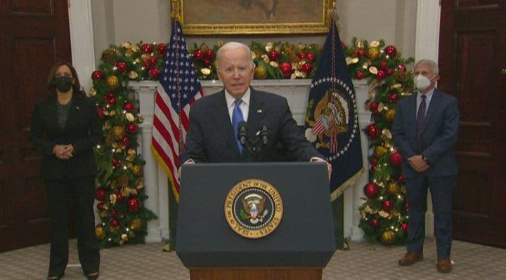 Some other nations are reinstating severe travel and business lockdowns to prevent the omicron variant from spreading, but Biden indicated the U.S. was not following suit.