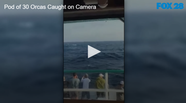 Pod of 30 Orcas Caught on Camera by Fox 28 Spokane | @ | March 22, 2021 12:48 pm TwitterFacebookGoogle+LinkedInPinterest 0 A charter fishing boat caught a whole pod of killer whales on camera. Related PostsBaby Seal Wanders Into Bar Teddy Bear Missing After Reaching Stratosphere Radio Show Connects Woman With Cat