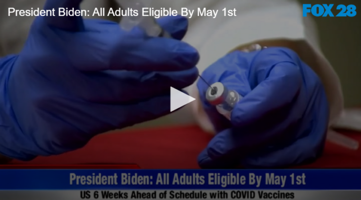 President Biden: All Adults Eligible By May 1st by Fox 28 Spokane | @ | March 12, 2021 3:23 pm TwitterFacebookGoogle+LinkedInPinterest 0 President Biden states all adults will be eligible for the Covid vaccine by May 1st. Related Posts Bloomsday is Back! No Whining About Wine Headlines for June 2 2021