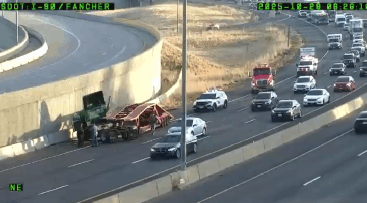 SPOKANE VALLEY, Wash. – A jackknife semi-truck crash is blocking the right lane of I-90 westbound near the Sprague/Appleway interchange.