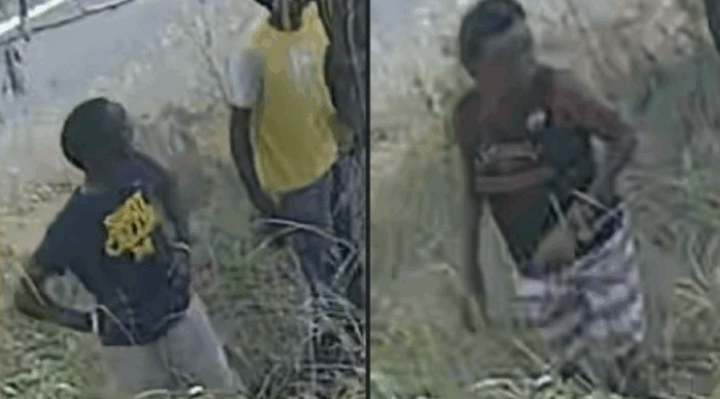 The suspects are described as follows: Suspect 1 is wearing gray shorts and a dark t-shirt with “Shot call-er M” in yellow writing. Suspect 2 is wearing Adidas-style pants with three white stripes and a yellow t-shirt with gray sleeves. Suspect 3 is wearing possibly white plaid shorts and a black top with red accents.