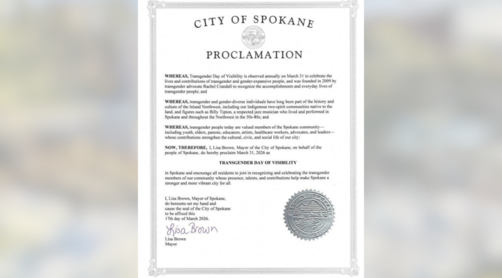 Mayor Brown said transgender people today are valued members of the Spokane community, including youth, elders, parents, educators, artists, healthcare workers, advocates, and leaders, whose contributions strengthen the city’s cultural, civic, and social life.
