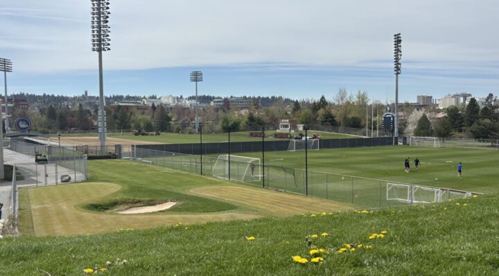 Crews are working at Gonzaga’s soccer field to prepare for the team’s arrival. The facility was receiving maintenance work as preparations continue.