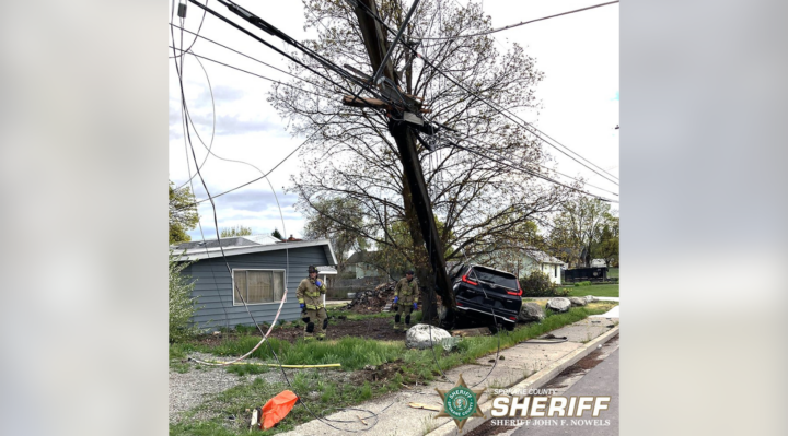 According to Spokane Valley Sheriff’s Office, the collision snapped the power pole in half, causing electrical lines to drop across the roadway.
