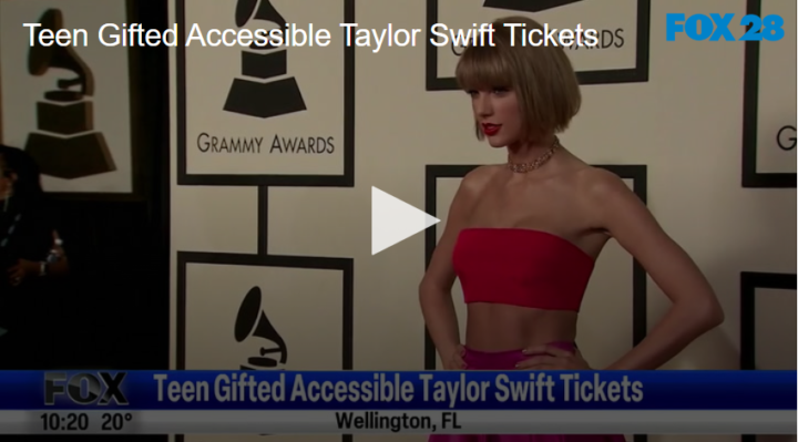 Teen Gifted Accessible Taylor Swift Tickets by Fox 28 Spokane | @ | November 21, 2022 1:24 pm TwitterFacebookGoogle+LinkedInPinterest A huge Taylor Swift fan was disappointed when she couldn’t get tickets to the concert. However, after a Facebook post went viral, she got something she never expected. Check it out here. Related Posts Art Program Helps Disabled People Weekend Digest Jan 10-11 Animal Antics With Monkeys And Donkeys