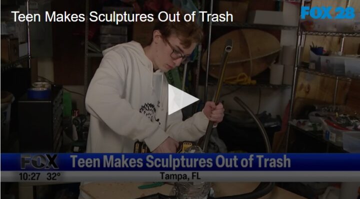 Teen Makes Sculptures Out of Trash by Fox 28 Spokane | @ | January 9, 2024 1:33 pm TwitterFacebookGoogle+LinkedInPinterest A Florida teen with a passion for the environment is making something beautiful. Related Posts Art Program Helps Disabled People Weekend Digest Jan 10-11 Animal Antics With Monkeys And Donkeys