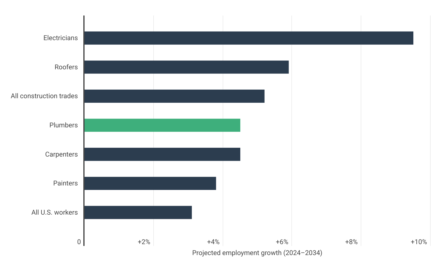 According to the BLS, plumbing jobs are projected to grow about 50% faster than the average across all U.S. jobs.