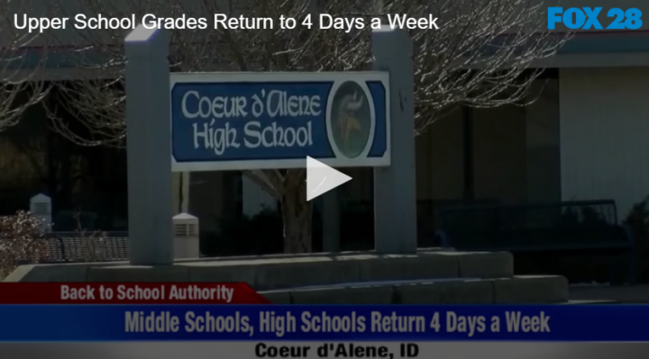 Upper School Grades Return to 4 Days a Week by Fox 28 Spokane | @ | January 21, 2021 12:05 pm TwitterFacebookGoogle+LinkedInPinterest 0 Multiple schools are looking to move back into the classroom as well as providing students with resources for their mental health. Related Posts Bloomsday is Back! No Whining About Wine Headlines for June 2 2021
