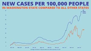 WASHINGTON – Washington ranks among the lowest in the country for new COVID-19 cases, according to the Washington State Department of Health. The state ranks #46 out 0f #50.