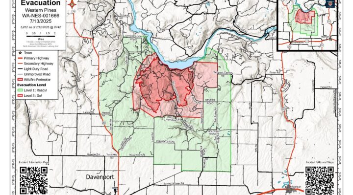 LINCOLN COUNTY, Wash. – An evacuation notice went up for the Western Pines area near Carp Lake and Western Pines Road due to a large wildfire.